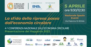Martedì 5 aprile si terrà la quarta edizione della Conferenza nazionale sull’economia circolare, organizzata dal Circular Economy Network. L’appuntamento torna in presenza, dalle 09.30 alle 12.30, presso il Nazionale Spazio Eventi, in Via Palermo 10 (Roma).