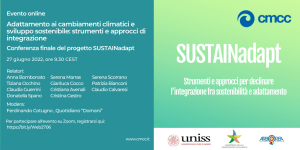 L’incontro è organizzato dal Centro Euro-Mediterraneo sui Cambiamenti Climatici e mira a presentare, divulgare e trasferire i risultati del progetto SUSTAINadapt, finanziato dal MITE nell’ambito del Bando per la promozione di progetti di ricerca a supporto dell’attuazione della Strategia Nazionale per lo Sviluppo Sostenibile. L’obiettivo principale del progetto era quello di sviluppare e applicare una metodologia utile a supportare l’attuazione, a livello regionale, della Strategia Nazionale di Sviluppo Sostenibile (SNSvS) in coerenza e complementarietà rispetto al Piano Nazionale di Adattamento ai Cambiamenti Climatici (PNACC).