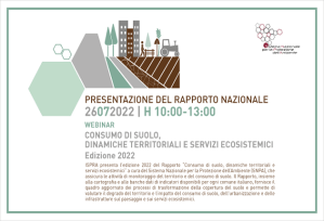 Il 26 luglio alle ore 10, sarà presentata l’edizione 2022 del Rapporto “Consumo di suolo, dinamiche territoriali e servizi ecosistemici” a cura del Sistema Nazionale per la Protezione dell’Ambiente (SNPA), che assicura le attività di monitoraggio del territorio e del consumo di suolo. Il Rapporto, insieme alla cartografia e alle banche dati di indicatori disponibili per ogni comune italiano, fornisce il quadro aggiornato dei processi di trasformazione della copertura del suolo e permette di valutare il degrado del territorio e l’impatto del consumo di suolo, dell’urbanizzazione e delle infrastrutture sul paesaggio e sui servizi ecosistemici.
